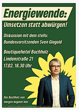 Am Dienstag den 17.2. kommt Sven Giegold nach Buchholz (18:30 - 20:30, Boutique-Hotel Buchholz, Lindenstraße 21). Sein Thema: Energiewende umsetzen statt abwürgen - Engergiewende 2.0