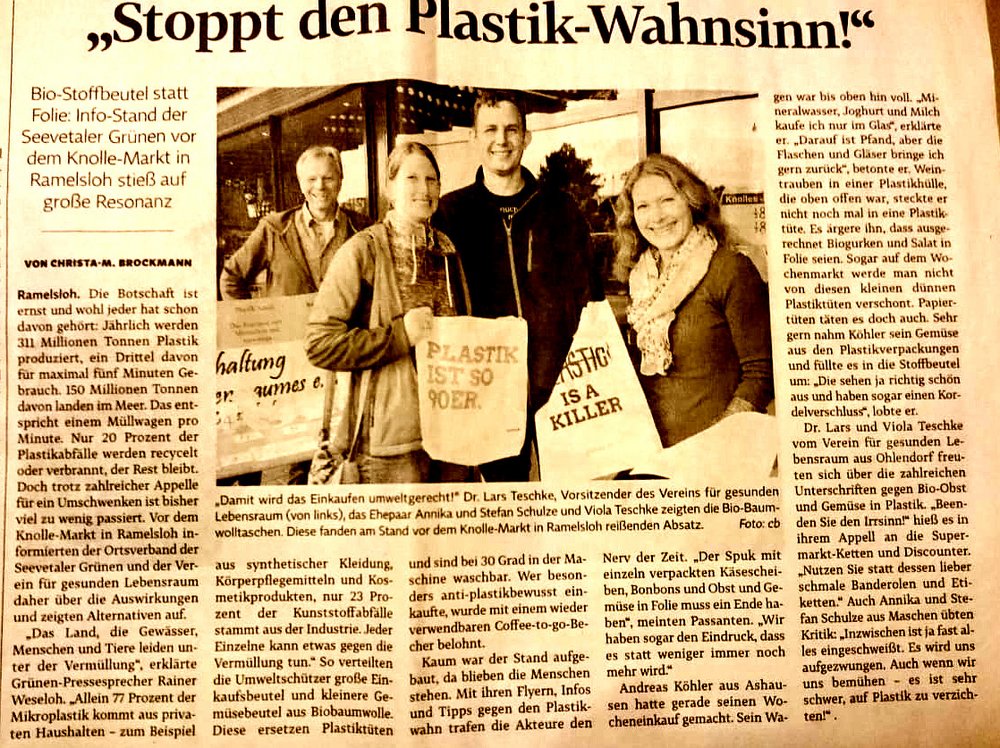 Am 15.09. hatten wir einen Infostand zum Thema Plastikmüll und dessen Vermeidung in Ramelsloh vor KNOLLES Markt.