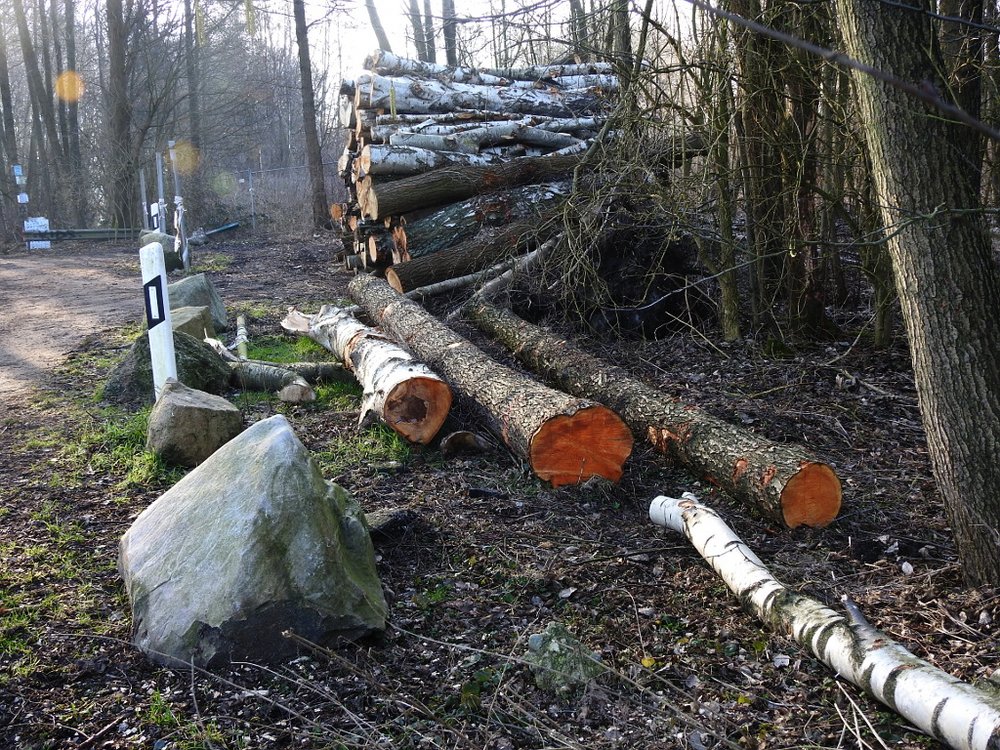 Wir haben außer Bäumen die noch von Sturmschäden gezeichnet waren auch einzelne Bäume gefällt die keine oder nur geringe Schäden aufwiesen, wie zum Beispiel entlang der Rettungswege im nördlichen Bereich vom Zürnweg bis zur Brücke (Anmerkung: an der Nordostecke über die Wettern). Da die Brücke von den Rettungsfahrzeugen nicht befahren werden kann und auf dem gleichen Weg zurückfahren muss wurde der Weg entsprechend frei gelegt. Aus dem gleichen Grund erfolgten die Fällungen auf der Ostseite von Zwischen den Seen bis zur Brücke.