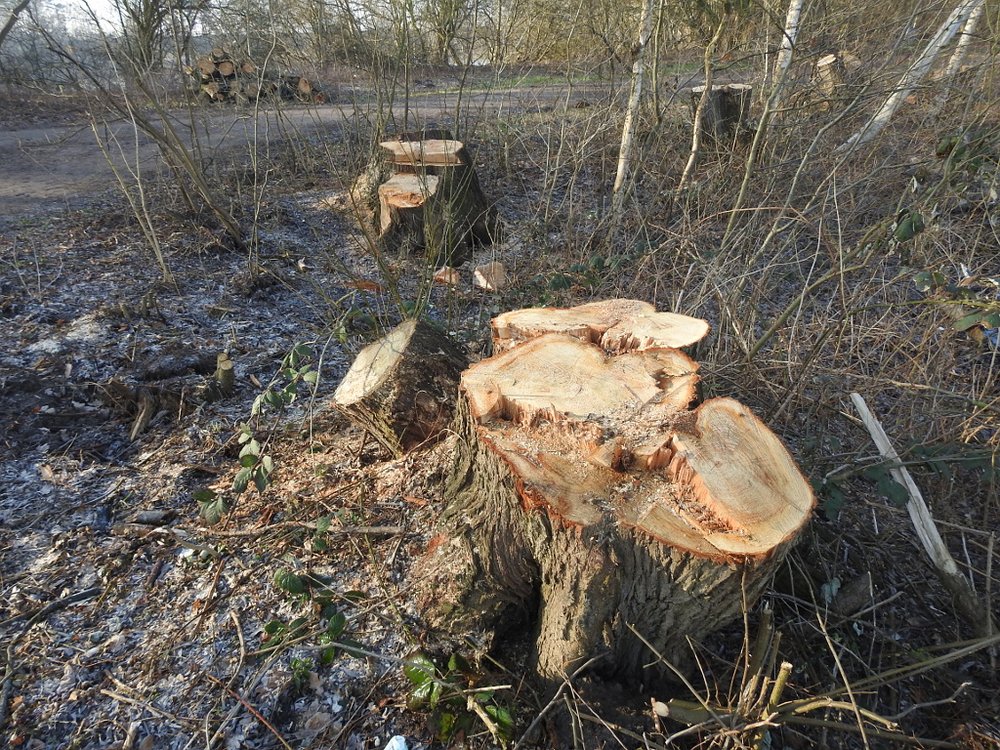 Leider wurden rund um den See im großen Moor mindestens 110 Bäume unterschiedlicher Größe gefällt. Das Fällen von 15 Pappeln entlang des Bahndamms hatte die Gemeinde Seevetal angekündigt. Nun wurden rund um den See sehr viel mehr Bäume gefällt.